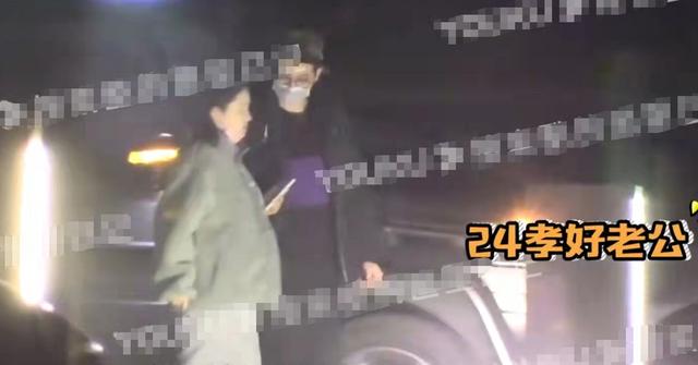 吃完饭后,吴中天带着老婆从餐厅走出,他一路上不是帮杨子姗披外套,就是扶她走路,十分宠爱老婆。