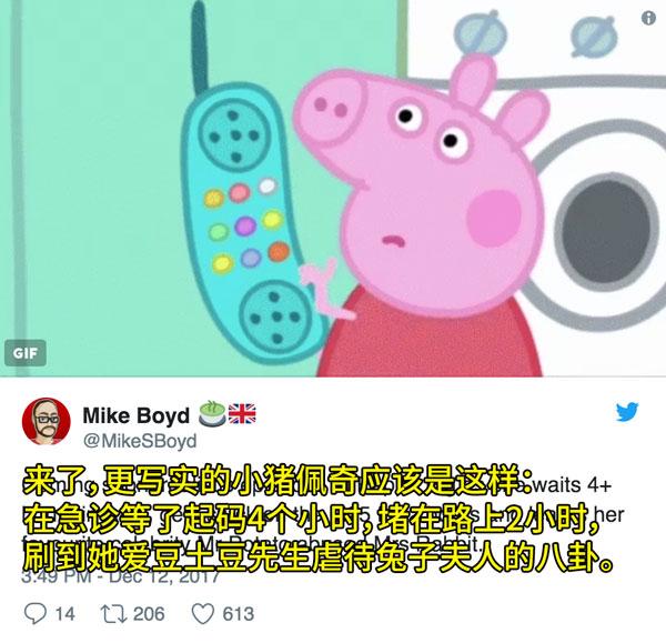 翻译一下差不多就是:小猪佩奇里关于看病的情节,误导了大家,导致观众可能有点小疼小痒就去看病,占用了医疗资源。
