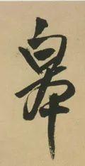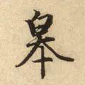 下部“十”字形瘦长,要稍往上靠。横画虚接起笔,抗肩,勿长;竖笔起笔要对准上部“白”旁重心直对,垂直有力,注意长度,垂露收笔。