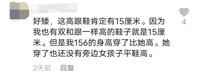 从画面中可以看到,程晓玥虽然穿了一双十几厘米的高跟鞋,但是跟身边的女生站在一起,仍然比她矮了一点,也难怪网友会做出这样的评价。