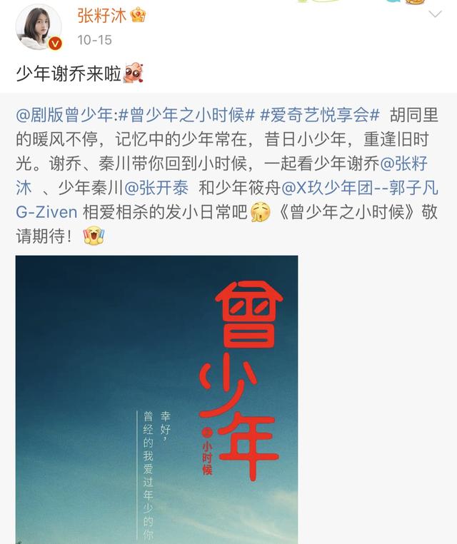 还要在《曾少年之小时候》中饰演女主谢乔。