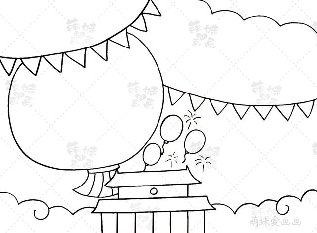 绘制可爱的男孩和女孩来为祖国母亲庆生,我们可以用彩带、气球和彩虹来装饰我们的简笔画。