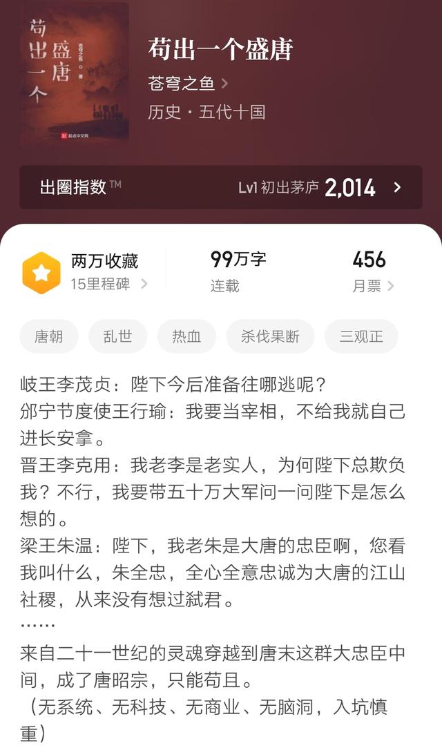 第三本书名:《苟出一个盛唐》作者:苍穹之鱼