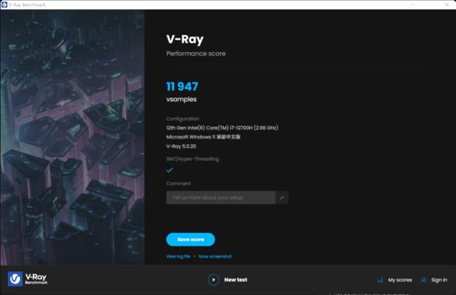 V-Ray是业界内常用的一款物理渲染软件,其官方推出了V-Ray BenchMark可以让用户查看自己电脑在使用这款软件时的性能表现。在纯CPU物理渲染的测试项目中,OMEN暗影精灵8Plus搭载的酷睿i7-12700H处理器得到了11947 vsamples的成绩,超越了11000分大关。