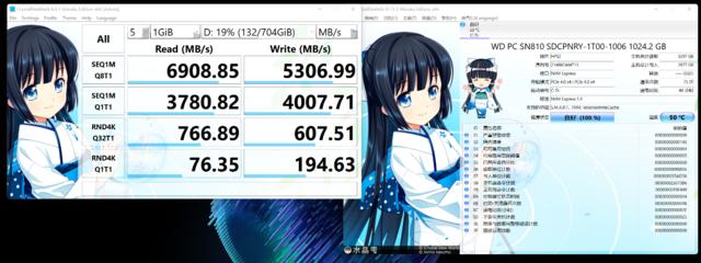 而硬盘方面,通过Crystal DiskMark8.0.1进行测试,结果显示,实测其读取速度6908.85MB/s,写入速度5306.99MB/s,4K随机读取速度为76.35MB/s,写入速度为194.63MB/s,均处于较高的性能水平。
