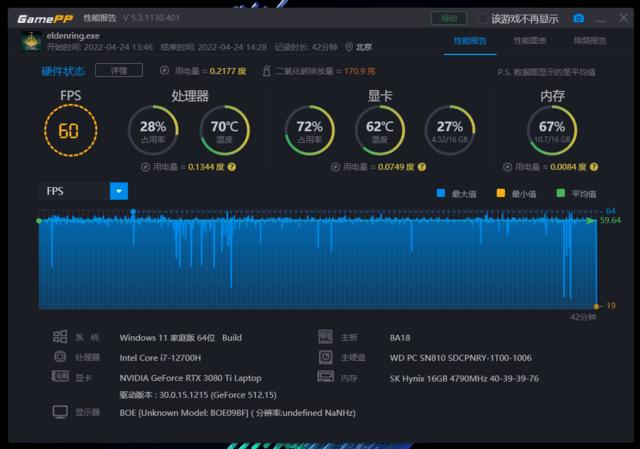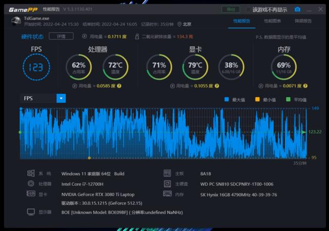 在测试之前,我们将这款机器的显卡驱动升级为最新的512.15版本,惠普游戏控制中心软件版本为v.1101.2203.4.0,BIOS版本为AMIF.05。而为了探究其性能表现,测试时全程开启狂暴模式和独显直连模式。同时,测试期间全程连接电源适配器,并确保电池满电。