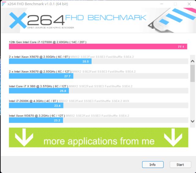 在X264 FHD BenchMark测试中获得了77.1fps,在X265 FHD BenchMark中获得了78.46fps,在内容生产力方面,说明其在多核性能方面有了十足长远的进步。