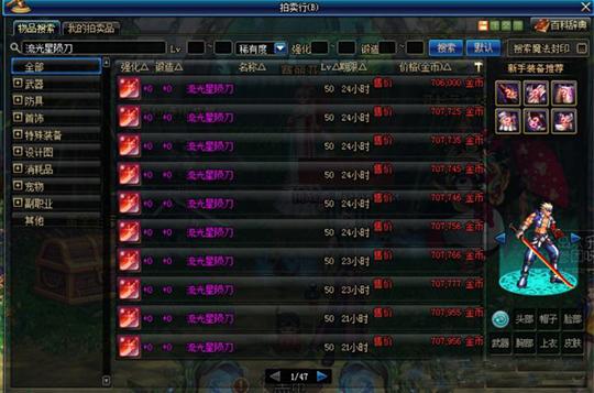 当时60版本中有一把流光星陨刀非常火爆,修长的刀身血红的外观还有刷图时出现的陨石特效简直是酷炫跨拽炸天,而且这把武器是老版本鬼剑士的终极神器,价格自然被各位黑商炒成了天价。