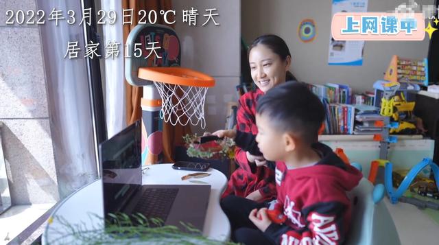 由于疫情,陈彦妃的儿子也只能在家上网课,不过陈彦妃全程陪着孩子一起上课,尽显慈母之心。