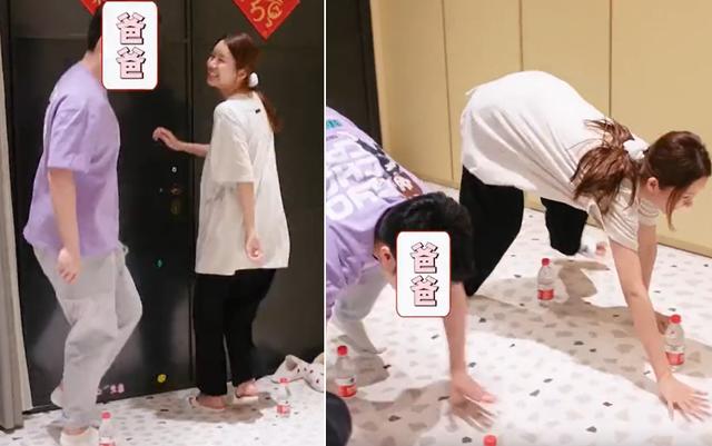 和孩子比完,陈赫又和妻子比赛了起来,夫妻俩一起在地上爬,画面十分滑稽搞笑。比赛前陈赫还抢跑,真是和节目中耍赖时一个样。