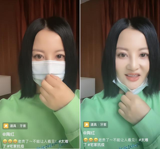 演员陶红同样也是因为疫情只能呆在家中,她在居家过程中更是无聊拍起了搞怪视频,一开始的她戴着口罩,将口罩摘下后发现牙床上装了牙套,她还配文说道老贵了,不能让人看见,看来呆在家里只能自己自娱自乐了。