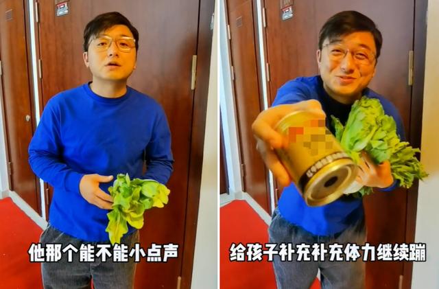 自娱自乐的除了王琳之外,还有主持人沈南,隔离在家的他硬是拍段子拍成了连续剧,给大家带来了许多欢笑。因为楼上邻居家的小孩吵到了自己,沈南便上楼找起了麻烦,但被塞了一些蔬菜之后,沈南便“狗腿”的表示可以多蹦一蹦。由此可见,蔬菜对于隔离之人的珍贵。