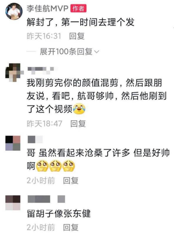 在这则视频下,李佳航也是留言说道解封了,第一时间去理个发。这样的愿望想来也是大多数人的愿望,可以说是十分朴实接地气了。