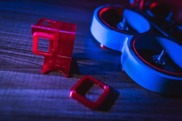 既然都提到了3D打印的相机座,在文章最后就和大家再讲一下,图中右侧是传统5寸花飞穿越机的相机座,和涵道机这个比角度明显大很多,这是因为涵道机拍摄视频时需要平稳相对更低速的飞行,所以机身向前俯仰的角度就要小于飞行速度快很多的传统5寸机,从这里也可以看出来涵道机就是为了拍摄而设计的机型了吧