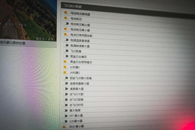 选择飞行数据统计,可以在降落后查看你设置的每项参数,比如飞行时间,电压,电池使用情况以及信号最低值等,以便分析
