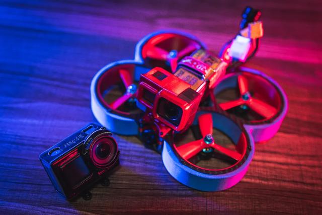 专门为影视拍摄而繁衍出的穿越机类型:涵道机。它是专门为了搭载GoPro或者DJI Osmo Action这一类运动相机而生的穿越机种类,也可以将其理解为“相机的载机”,同样它并不具备类似大疆的避障、智能飞行、一键出片这样的辅助功能,整个飞行全部依靠手动操作,需要操作者有一定的飞行基础,涵道机一般都是3寸规格,同时它与传统花式飞行的5寸穿越机相比拥有更强的稳定性和安全性,反之涵道机不如5寸机灵活机动。