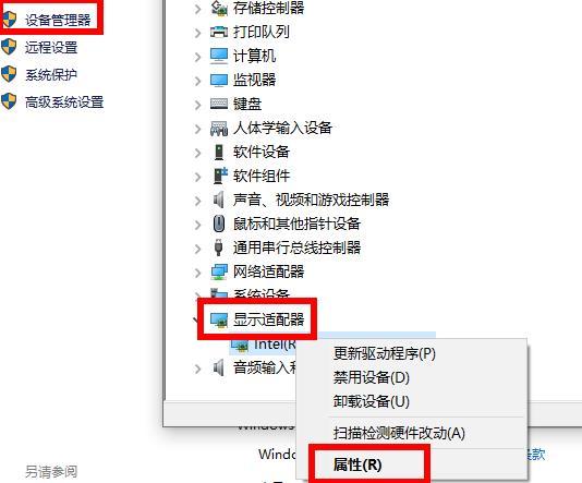 3、点击左侧任务栏的设备管理器,然后点击显示适配器的下拉右击你的显卡选择“属性”。