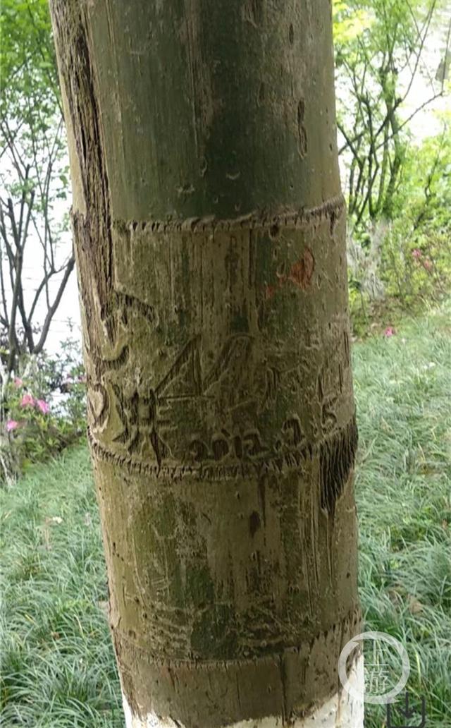 树干上面不仅刻了字,还到处都是划痕......4月7日,家住沙坪坝区的袁先生致电上游新闻966966热线反映,称自己清明节期间和朋友一起去九龙坡区华岩寺风景区内游玩,却看到七八棵大树树干上“伤痕累累”。原本游玩的好心情,瞬间被这种不文明出行的行为给影响了。