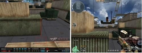 如图所看到的的这两个点位,都是可以按照图1利用空降式打法来进行击杀对方,蹲跳上箱,是不会轻易被对方发现的,跳到箱子上面后再跳一下就是所谓的高跳,然后击杀对方,或者空降下来击杀对方。