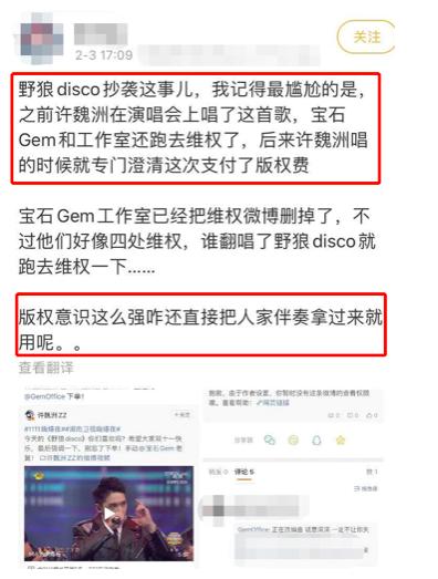而有网友还表示“老舅”董宝石和野狼团队的工作室其实维权意识并不薄弱,此前他们就针对《野狼disco》的版权问题曾多次下场与人周旋,还逼得许魏洲专门澄清自己支付了版权费 ,而现在的状况无疑是搬起石头砸了自己的脚。不过目前,董宝石的经纪人已回应表示他们与一个声称自己购买了版权的陈先生进行了合作沟通,后续的具体事宜将全部交由律师处理。