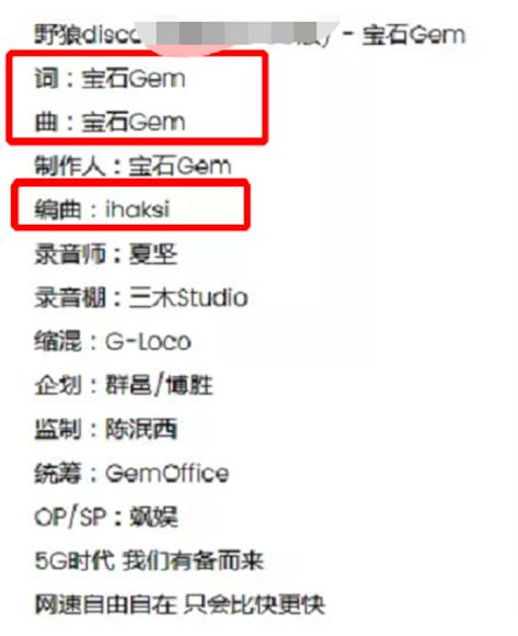 而《野狼disco》的这块基石却染上了侵权的污名,董宝石并未公开提及过自己“盗用”别人Beat一事,各家平台上的作曲、作词署名也都是“老舅”董宝石自己的名字,而且,编曲处的署名“Ihaksi”还把这位芬兰原制作人的名字标注错误。