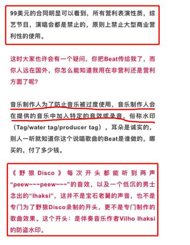 Ihsksi虽然是公开免费提供给人使用,但是明确标注有禁止商用的规定要求,而且在《野狼disco》中也含有原制作人Ihsksi的一段防盗低音。