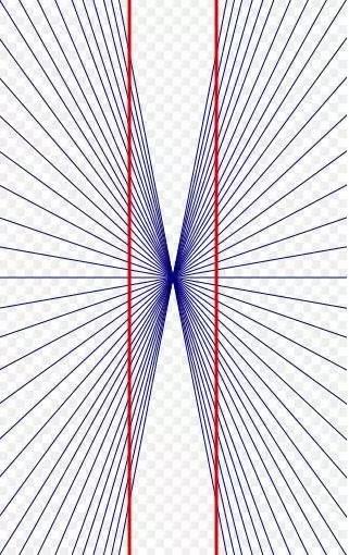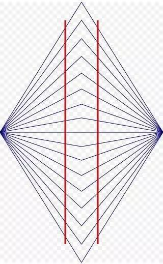 下面三幅图均与平行线有关。图4是佐尔拉错觉,是德国天体物理学家佐尔拉于1860年发现的。本来是一组相互平行的线段,在添加上一些附加线段之后看起去便不再平行。图5与图6分别叫海林错觉与冯特错觉,分别由德国生理学家埃瓦尔德·海林与威廉·冯特在19世纪发现。这两幅图均受到了放射状线的影响,使得原本的平行线看上去发生了弯曲,只不过两者弯曲的方向正好相反。这些造成视觉上形状或方向发生的原因主要是干扰线的存在误导了视觉。干扰线的布局还会影响错觉的效果,比如对佐尔拉错觉而言,不但干扰线要交错分布,而且与平行线的夹角还有关系,有研究表明在两者呈45度角时,佐拉尔错觉效果最明显。在图7与图8,变形了的正方形与圆形也是干扰线影响的结果。