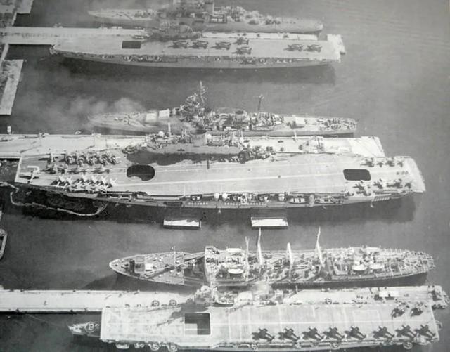 图、待命的英法海军,自上而下的三艘航母分别是阿罗芒什,鹰和拉法耶特