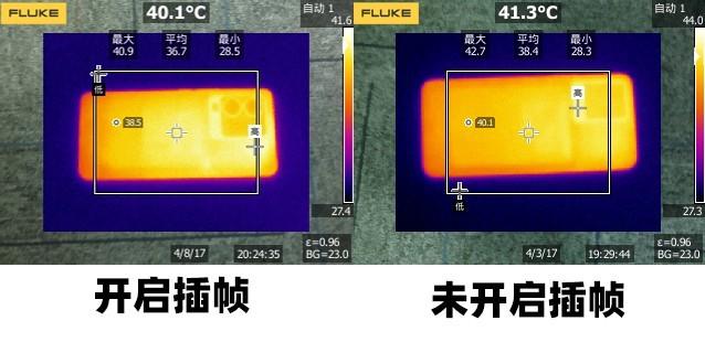 开启插帧后,《原神》的整体体验更为流畅,就是那种你一旦用过就回不去的那种高帧体验。而由于将60帧的游戏画面降至45帧后再插帧,所以整机的功耗也有所降低。通过开启插帧和未开启插帧的前后最高温度对比,我们也能印证这一观点。