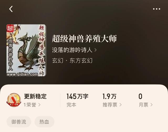7,超级神兽养殖大师。作者:没落的游吟诗人。