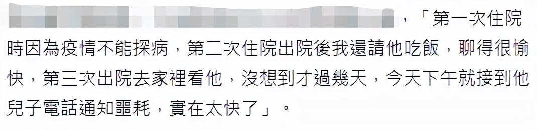 萧润禾透露:“第一次住院时因为疫情不能探病,第二次住院出院后我还请他吃饭,聊得很愉快,第三次出院去家里看他......”