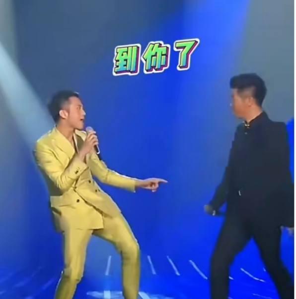 这种活儿邓超可太熟悉了,他一上场就掌握了主动权,边跳边唱,到了交接的时候还会示意一旁的胡海泉“到你了”。