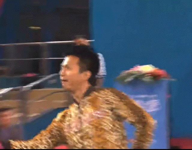 最搞笑的是,邓超实在是跳得太忘我了,一不小心就把自己的裤子跳崩了。