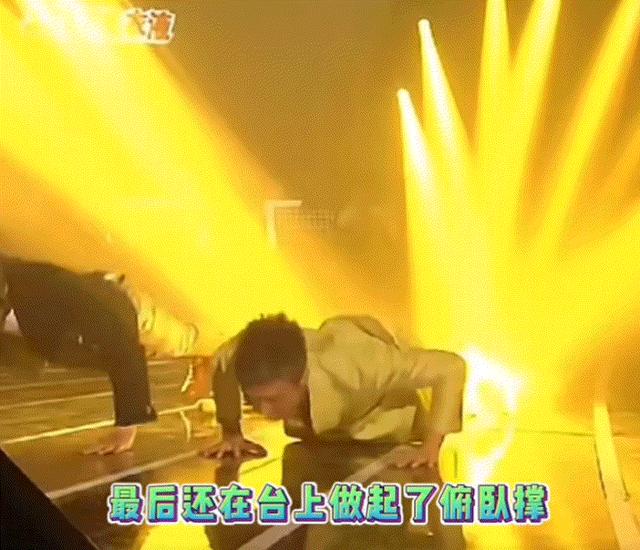 一首歌唱完,超哥还在台上做起了俯卧撑。