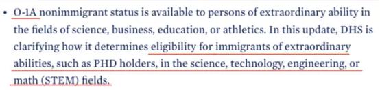 在这之前,只有在各个领域有杰出能力的人才能申请O-1A签证。但是新规出来后,有助于STEM领域特殊人才申请O-1A签证。
