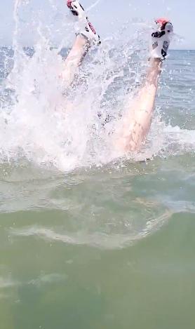 为了将视频拍的吸引人,黄海波甚至不惜“下海”。在短短几十秒钟时间,黄海波在海里翻来覆去了好几个回合,扬言道:“但凡我要淹不死,我指定给您捞上来。”