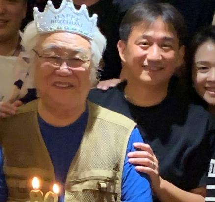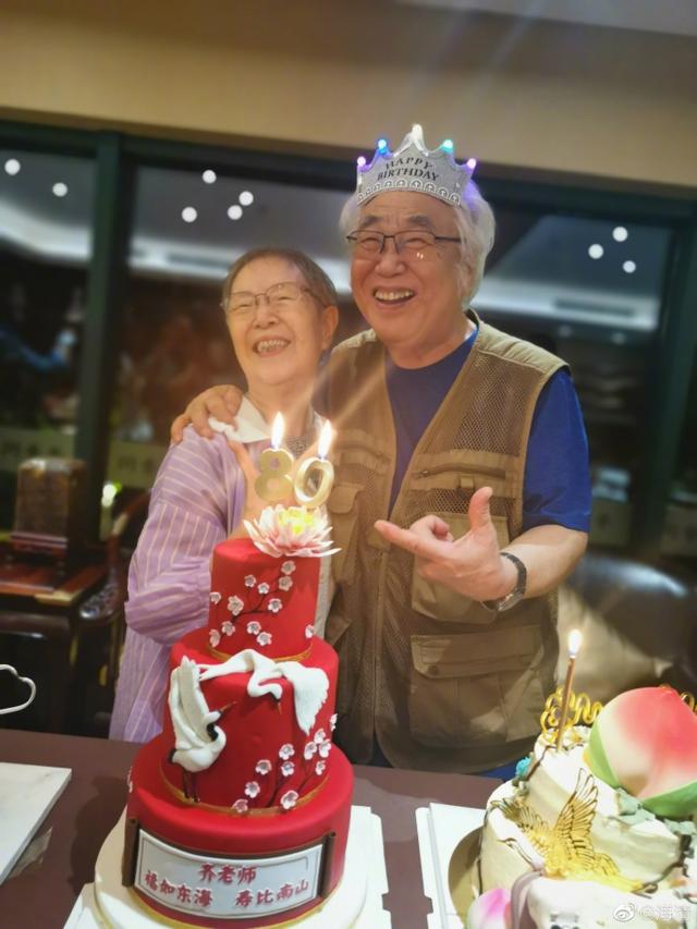 照片中,北京电影学院教授齐士龙头戴生日皇冠,与夫人甜蜜相拥,脸上洋溢着幸福的笑容,精神状态非常好。