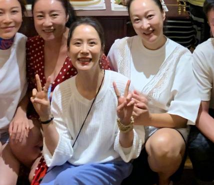 与低调的老友不同,海清玩得非常欢脱,当晚的她身穿白色上衣搭配阔腿裤,整个人文艺范十足,看上去气质出众,皮肤紧致有光泽,一点岁月的痕迹都没有,完全不像43岁的状态,在一群人中非常亮眼。