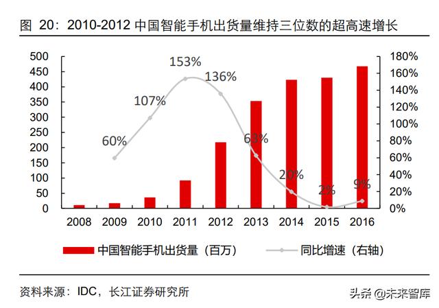 2012 年低位期的结束,得益于移动互联网升级而进入爆发期。根据 IDC 数据,中国智 能手机出货量在 2010-2012 年均实现了三位数的超高速增长,渗透率快速提升,为移动 互联网的爆发奠定了良好基础。同时,2013 年随着 4G 发牌消息的预热到落地,通信板 块整体进入了 4G 预热期,4G 所具备的更高速率、更高稳定性等优势极大的优化了用 户的个人体验,视频、游戏等典型应用的出现也进一步推动了流量高增,移动互联网逐 步进入爆发期。