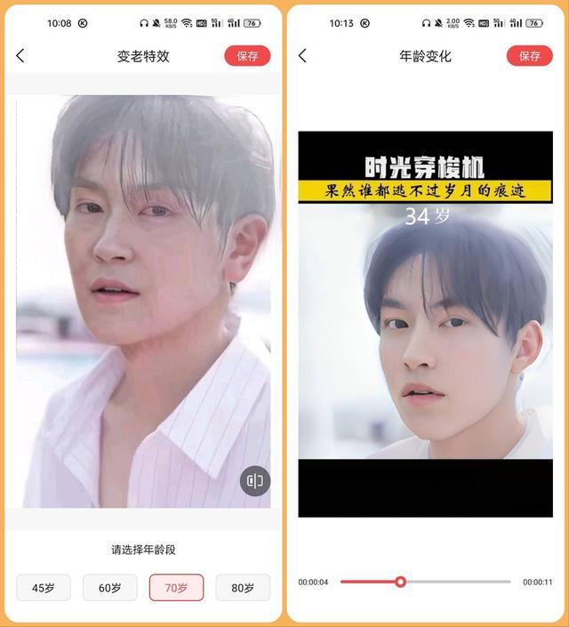 在“图片特效”这个界面中,还有人脸动效、性别变化、变老特效等等。想知道自己老了什么样子,就可以拿它来测一测哦!