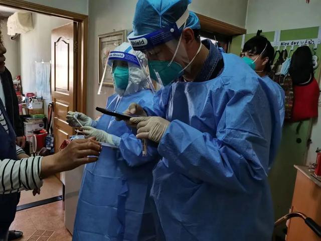 5月15日11点时,来做核酸的居民渐渐少了起来,我也得了空。看着社区的工作人员从屋里出来,我便问道还能帮着做些什么。“小区里还有几位行动不便的居民,我带着您和医生去入户采样吧。”就这样,我们走进了一户户行动不便的人家。