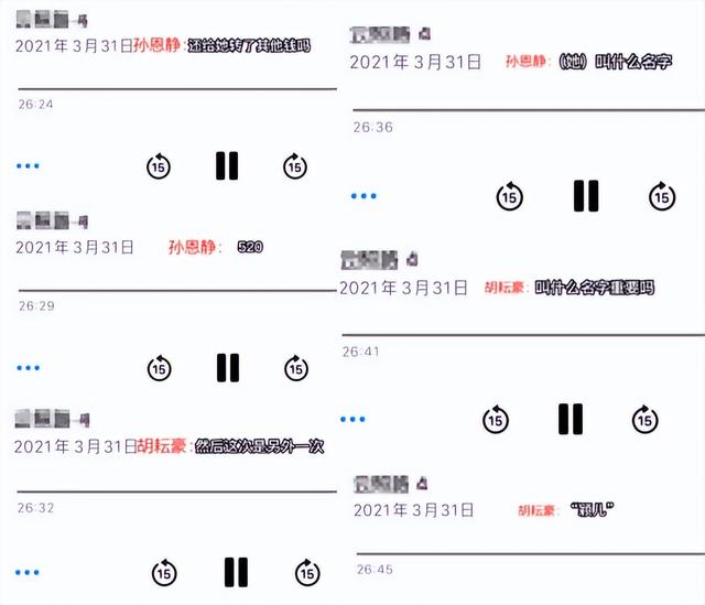 在胡耘豪发布声明之后,孙恩静曝光了一段去年3月和胡耘豪的对话录音。