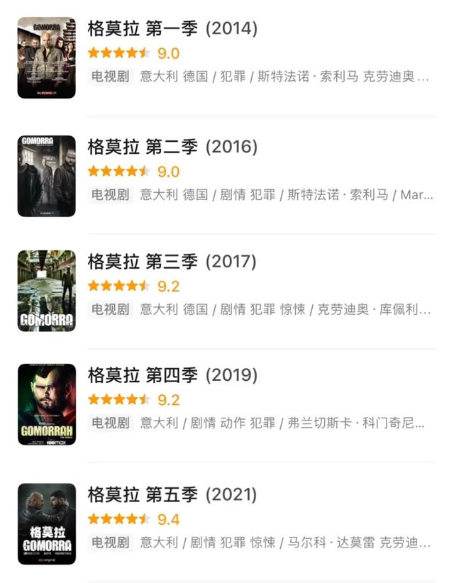 此外,更值得一提的是,同一部原作改编的电影《格莫拉》。2008年,它在欧洲电影奖中横扫五奖,获得奥斯卡奖提名。