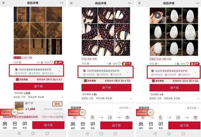 记者通过微拍堂随机查看的不同拍品均标有“1000万消费者保障基金保驾护航”字样。资料图片