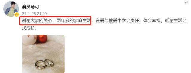2021年2月,演员马可官宣已婚两年多,对象是演员王丹妮,也有了一个孩子,虽然不理解二人为何隐婚隐育,但他们开心就好。