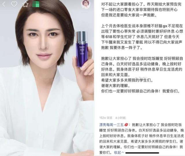 然而就在近日,作为辛巴“得意弟子”的时大漂亮却突然在平台发文,自称身体不适,和粉丝宣布暂停直播!