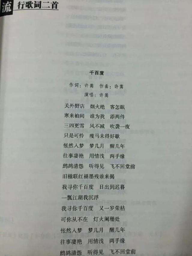 他创作的《千百度》被选录进了大学语文课本上,这对任何一个歌手来说都是至高无上的荣誉。