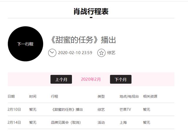 肖战的行程上显示2月份没有任何通告,只有一档综艺录播,唯一的一个品牌见面会也被公司各推掉了。