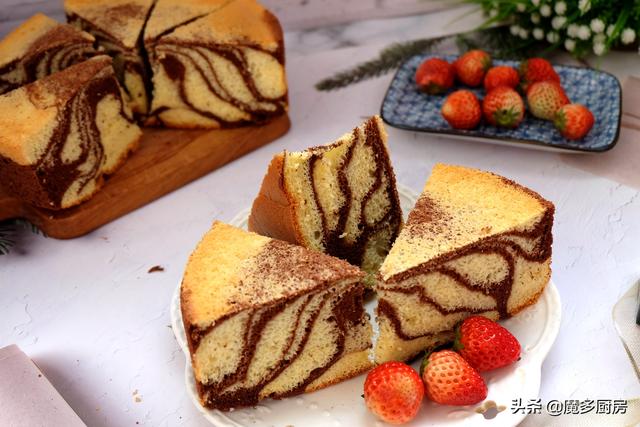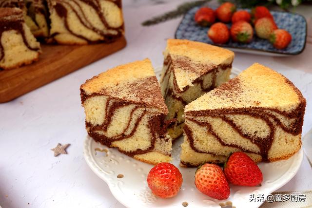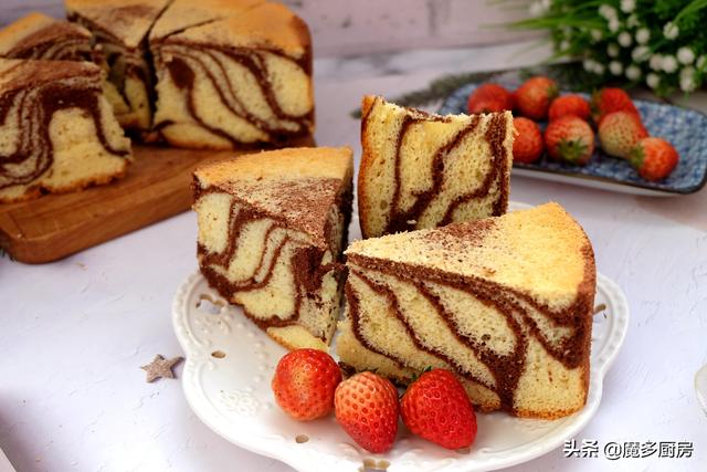 做一个双色斑马戚风蛋糕当早餐,纹路自然香甜柔软,女儿连声夸好吃!最喜欢做蛋糕当早餐了,提前一天准备好,早上只要热个牛奶就可以了,太省事了。自己做的蛋糕无油低糖更健康,配方简单实用,好做又好吃。