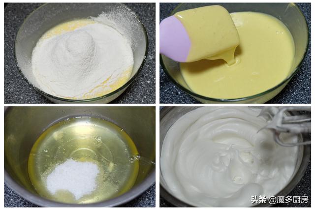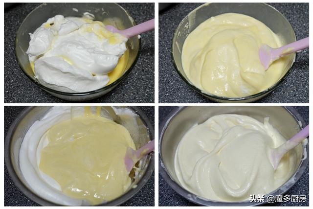 到目前这一步骤,都是常规的原味戚风蛋糕的做法。